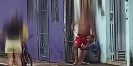 Quando os agentes chegaram ao endereço informado, encontraram o suspeito imobilizado pelo dono da casa, que segurava um facão para evitar sua fuga. Antes da chegada da equipe de segurança, o homem já havia sido alvo de agressões por parte de populares.
